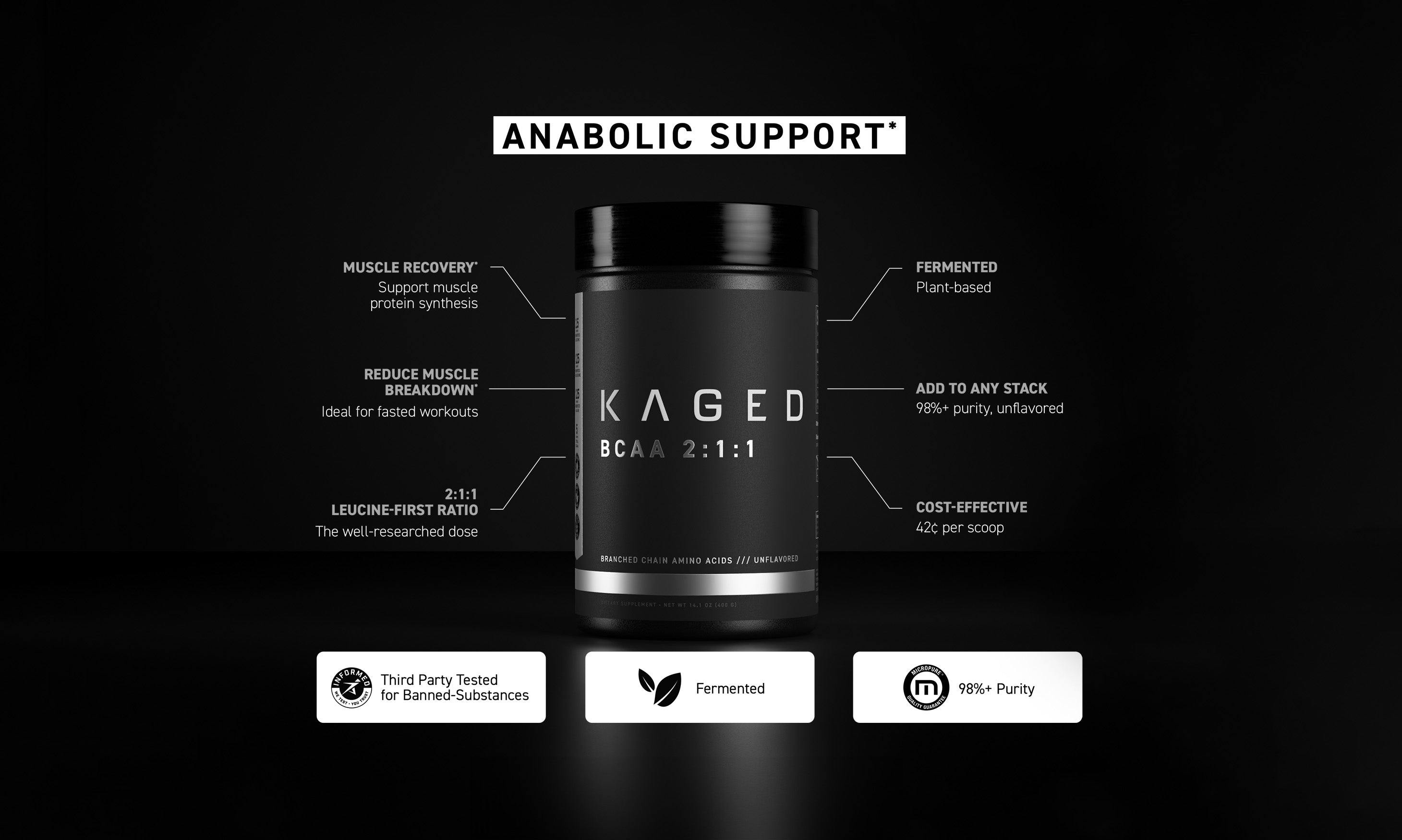 The branched-chain amino acids are key building blocks of protein that help reduce muscle breakdown and encourage muscle growth. Our fermented BCAAs come from 100% plant-based sources. This pure, unflavored powder mixes easily, so it’s perfect to add to any stack anytime you need quality fuel for your muscles.*